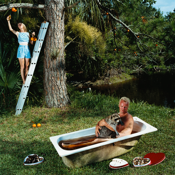 Bathers: Jeff Richardson and Charlie the raccoon with ex-wife Tina, Wildlife Rescue, New Smyrna Beach, FL